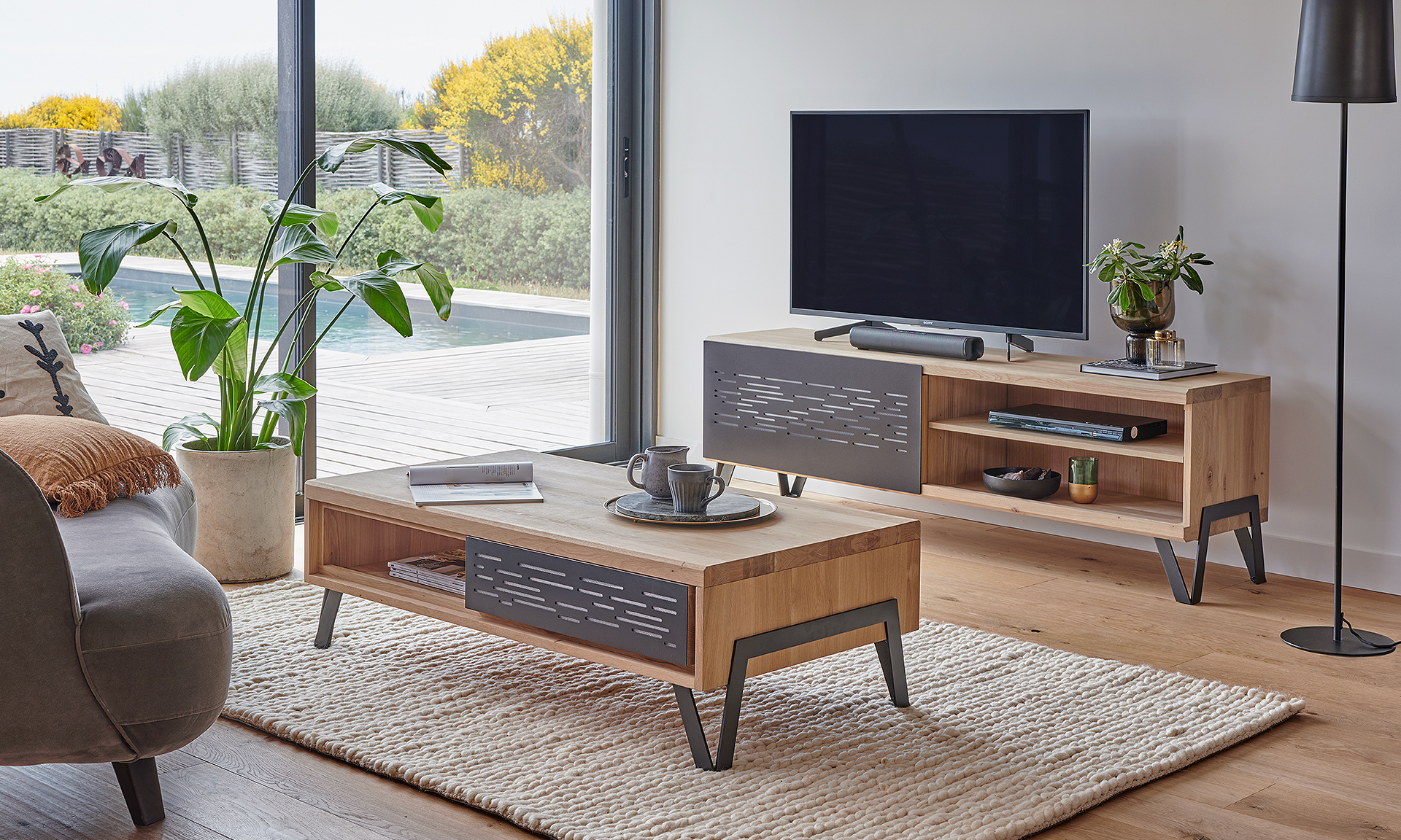 Table basse 1 tiroir L.124 H.39 P.65 cm
