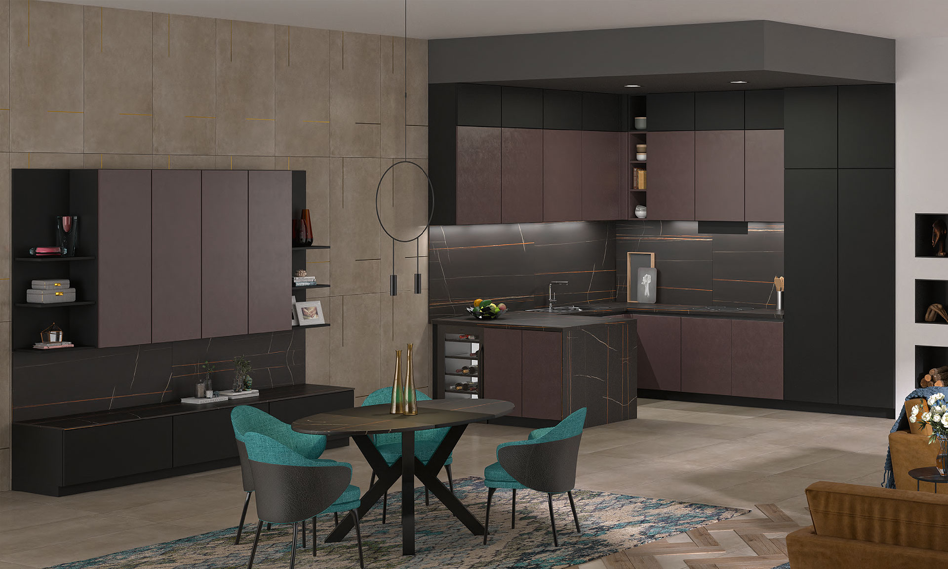 Métaline structuré Sense mat mélaminé imitation béton marron mat et sense noir mat.