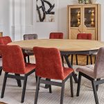 - Table ronde 150×150 H.77 cm – 1 allonge portefeuille 60 cm